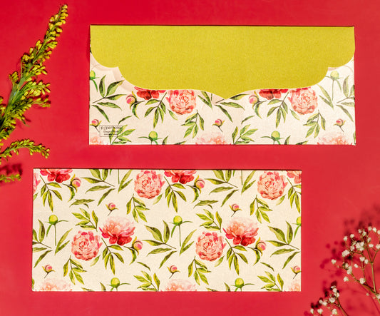 Peonies Design Money/Shagun Envelopes With Green Flap
