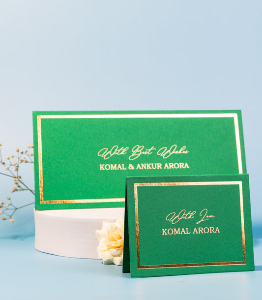 Personalized Envelope & Folded Tag With Gold Foiled Border Combo