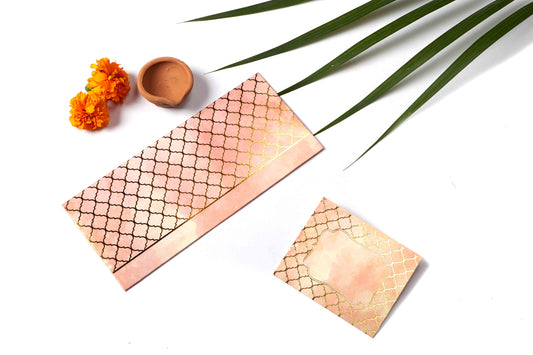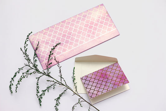 Watercolor Moroccan Theme Personalized Gold Foiled Envelope & Folded Tag Combo