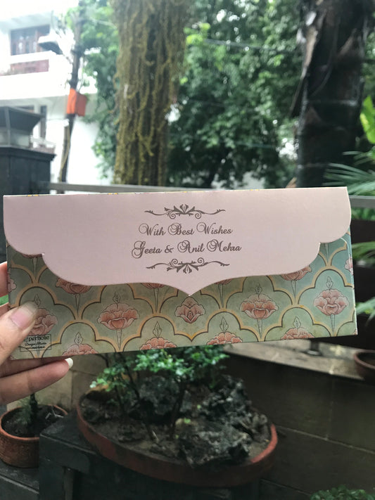 Mughal Garden Theme Money/Shagun Envelopes with Green Flap
